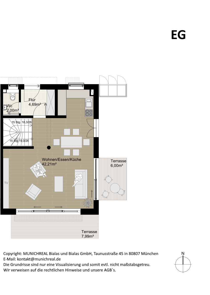 Die beiden Terrassen und der Garten könnten daher zu einem zweiten Wohnzimmer werden, in dem sich die Natur genießen lässt: zum Relaxen, beim Grillabend mit Freunden, zum Sonnenbaden oder zum Spielen für die Kinder.