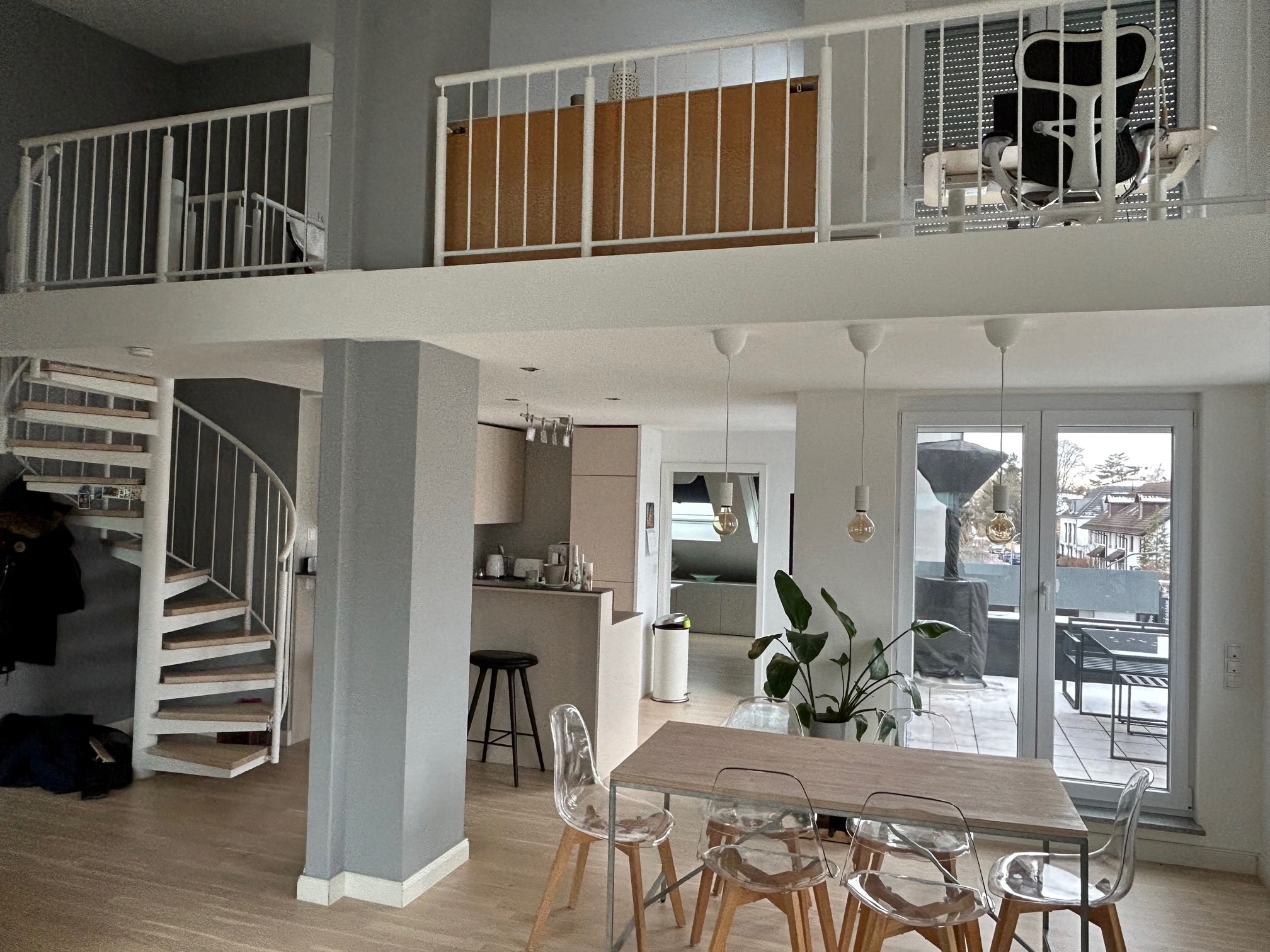 Mit dem Lift erreichen Sie eine lichtdurchflutete modern geschnittene 2,5 Zimmer Wohnung mit Galerie und einer traumhaften Dachterrasse.
